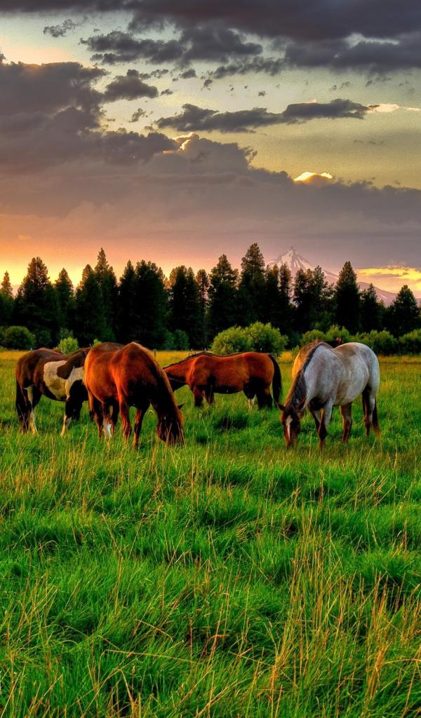 Wallpaper Herd of horses in the summer