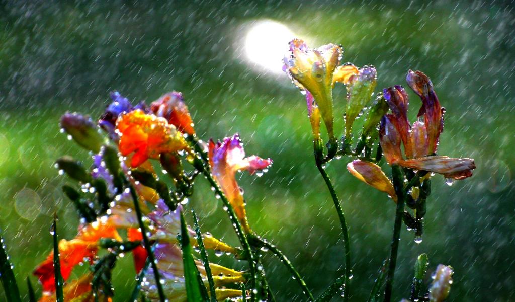Wallpaper Flowers in the summer rain