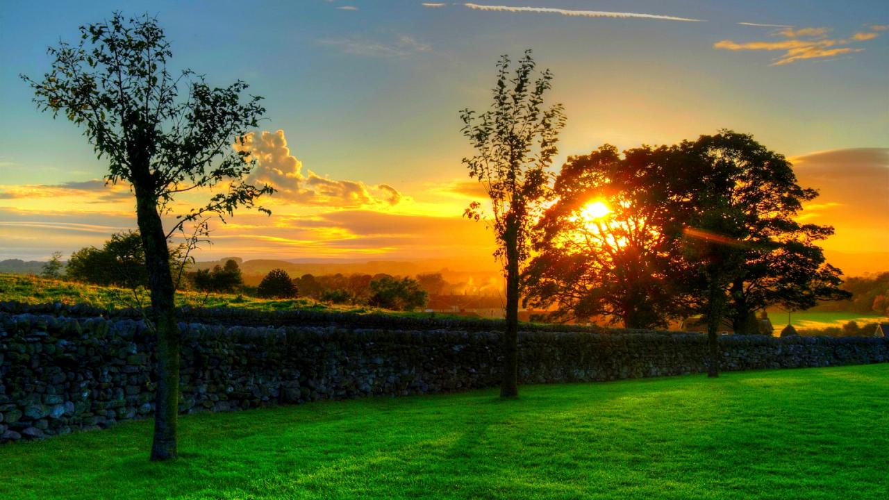 Wallpaper Stone fence at sunset