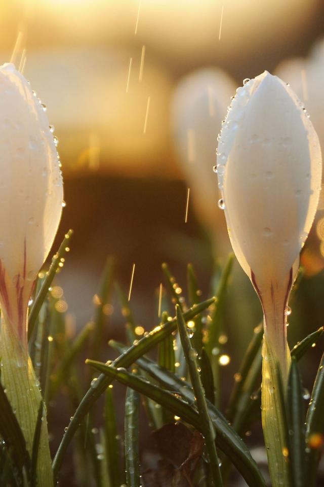 Wallpaper White flowers in the rain in summer
