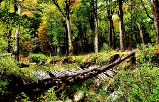 Wallpaper Bridge in a gloomy forest