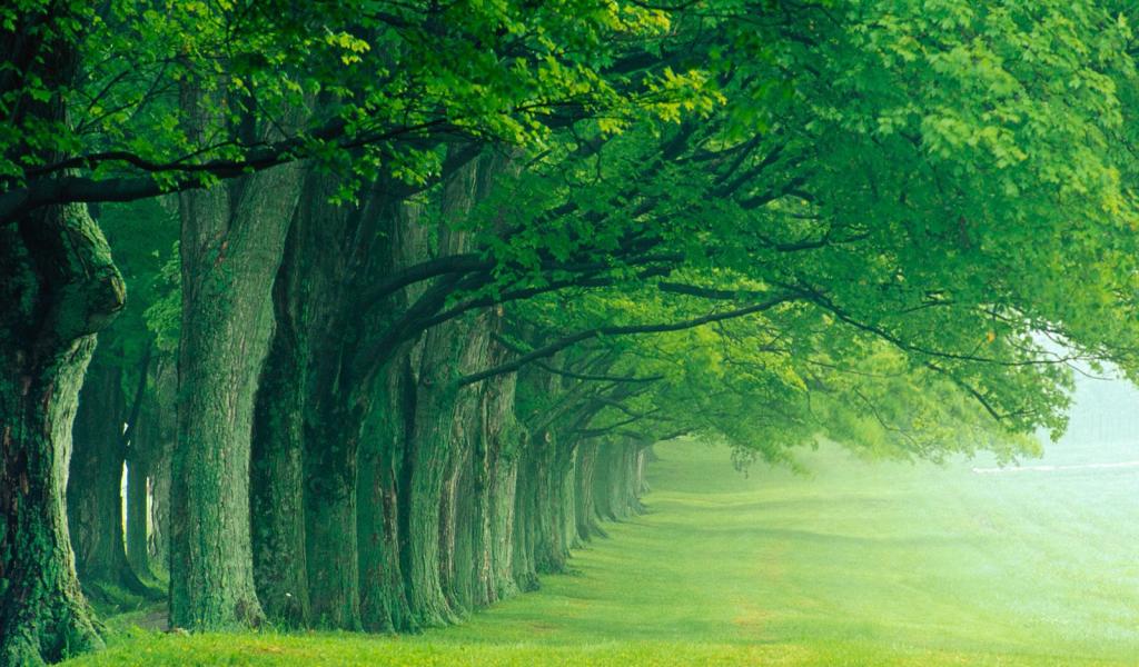 Wallpaper Mighty trees form an arch over the road