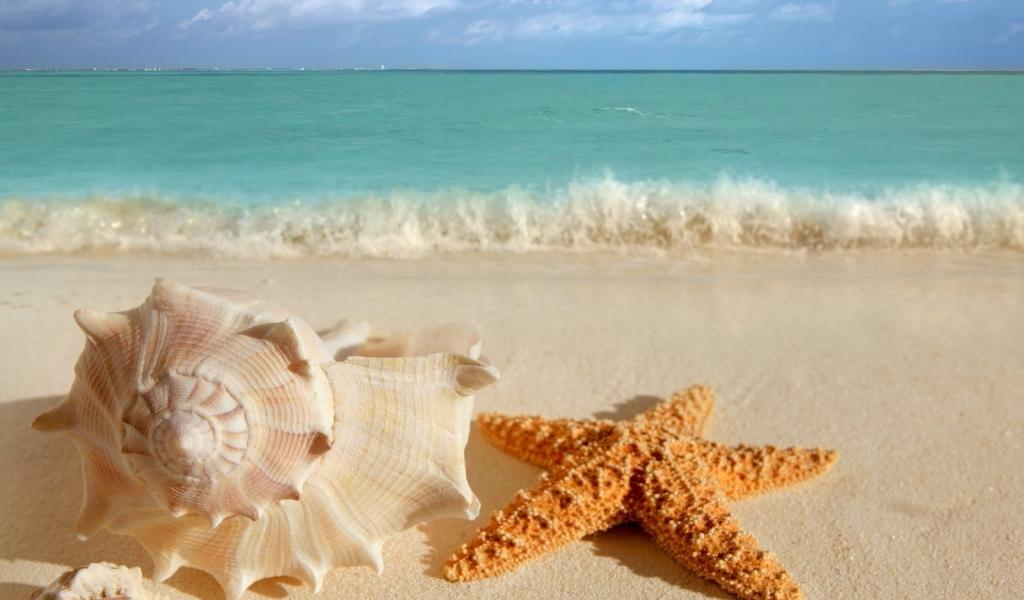 Wallpaper Seashell and starfish on the beach in summer