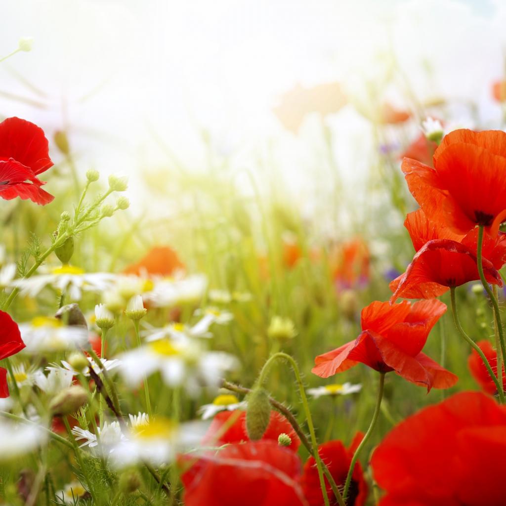 Wallpaper Poppies and daisies on summer field