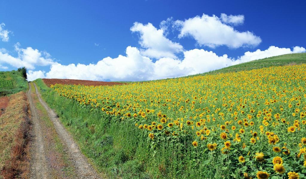 Wallpaper Summer road among fields