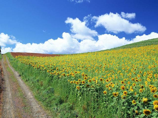 Wallpaper Summer road among fields