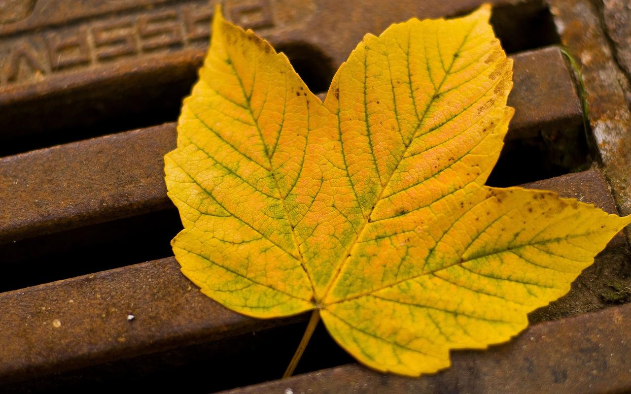 Wallpaper Yellow leaves on the iron bars Photo
