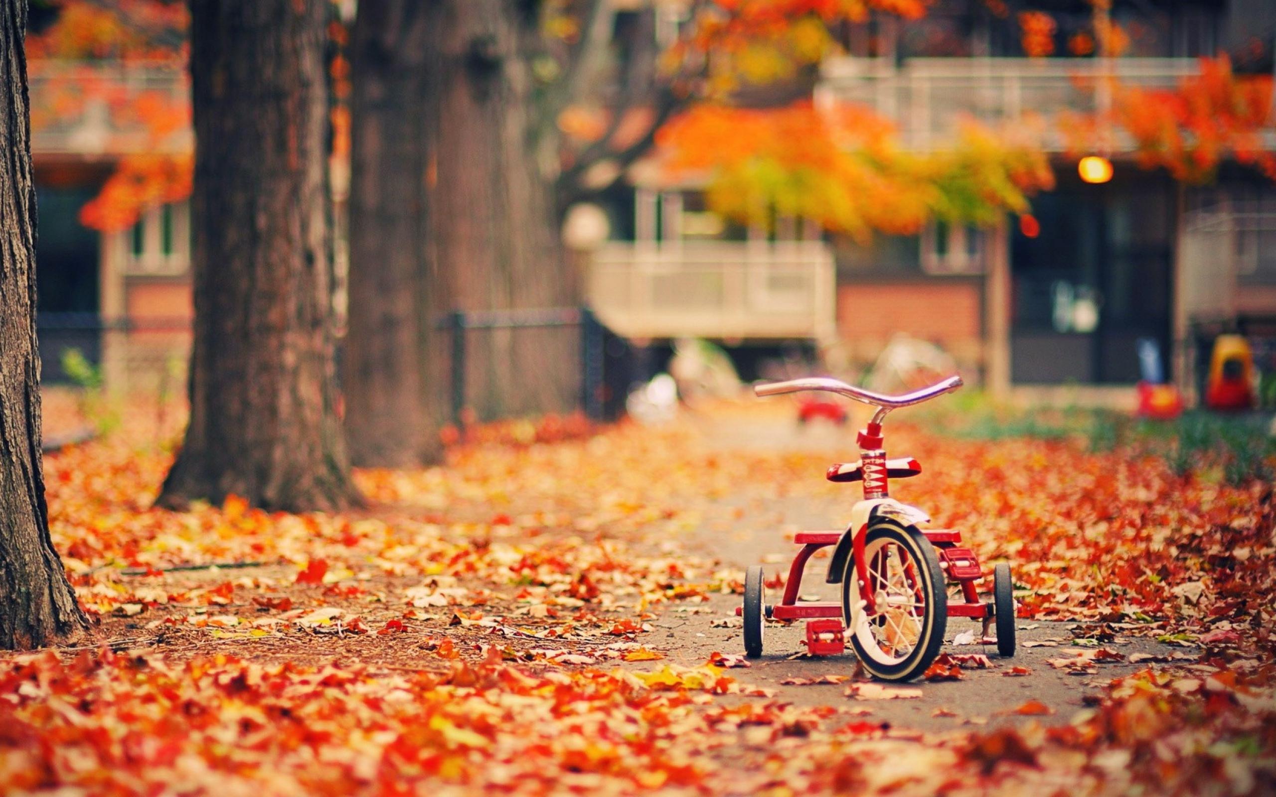 Wallpaper Children`s bicycle on the fall foliage