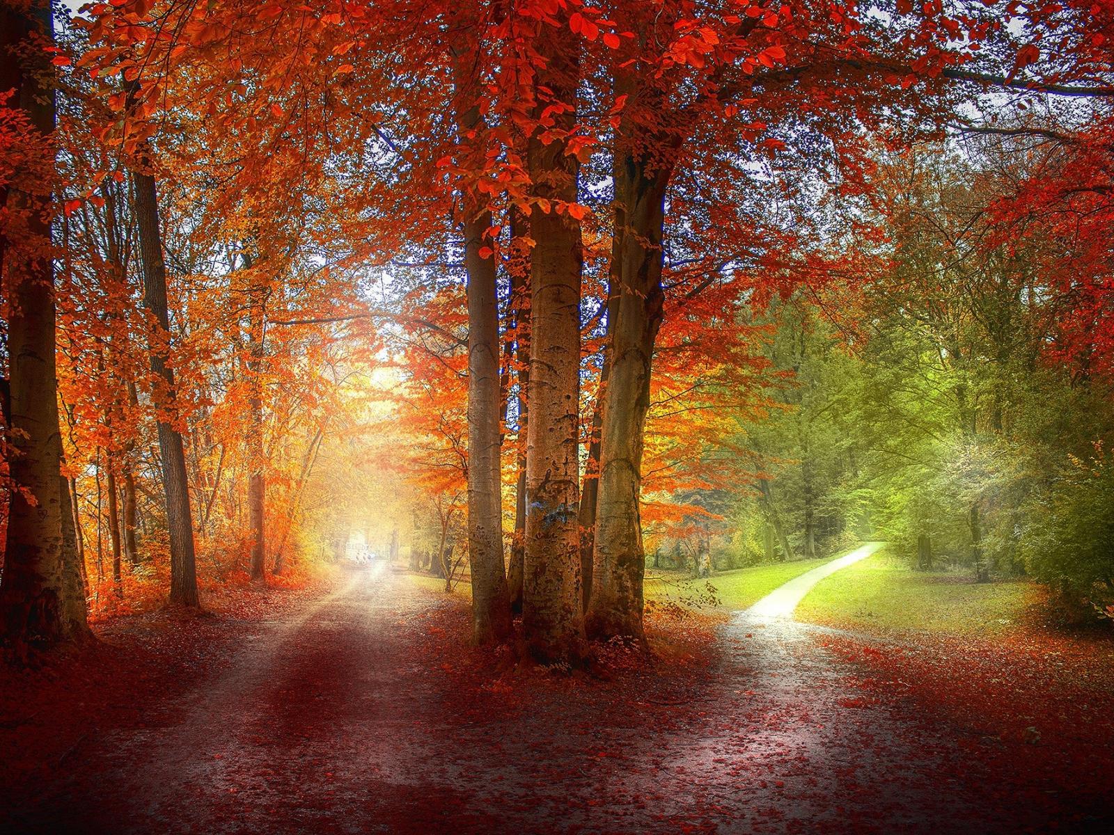 » Wallpaper Two tracks in the autumn forest