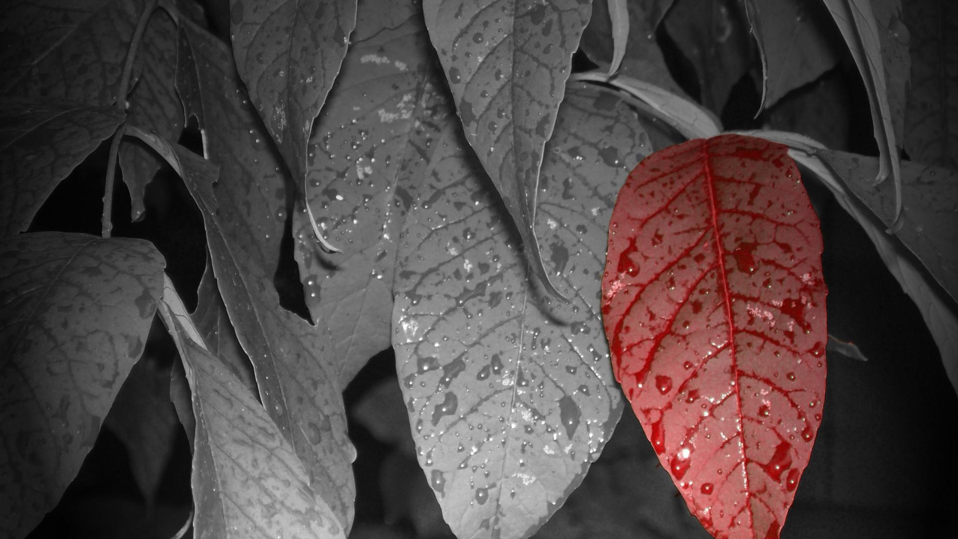 Wallpaper Red leaf among gray