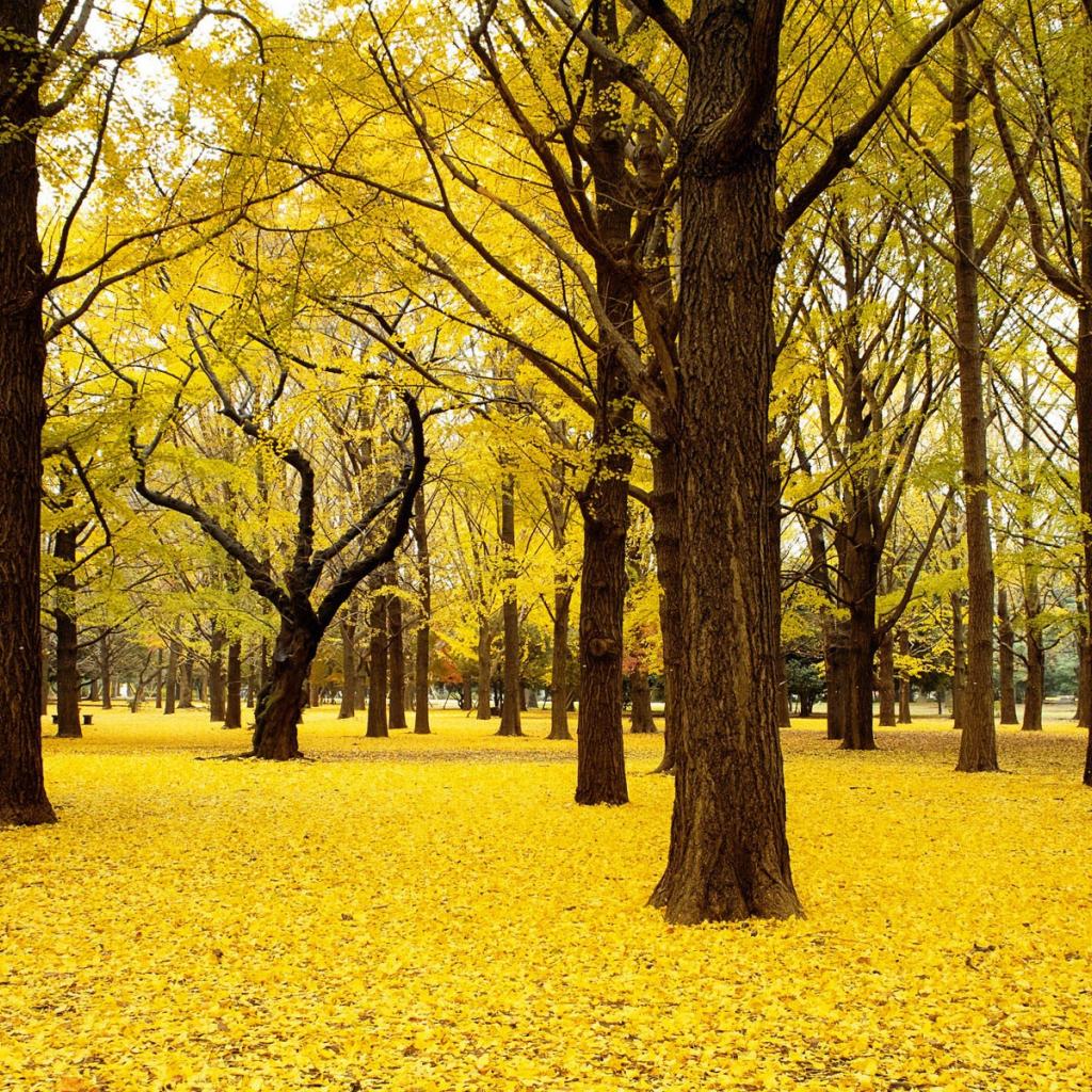 Wallpaper Carpet of yellow leaves in the park