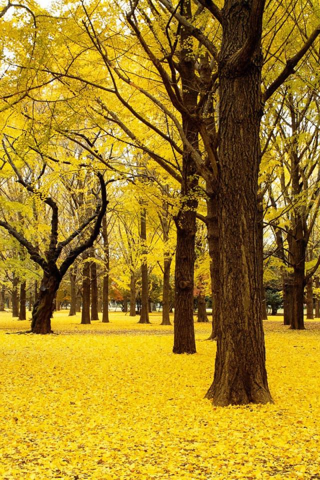Wallpaper Carpet of yellow leaves in the park