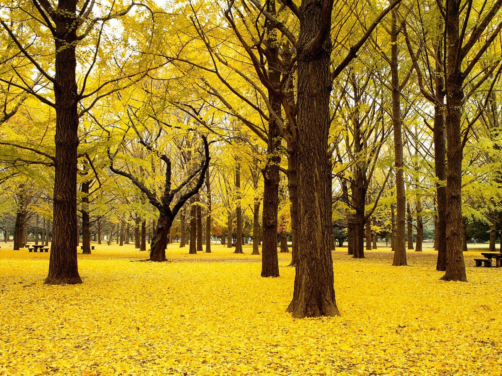 Wallpaper Carpet of yellow leaves in the park