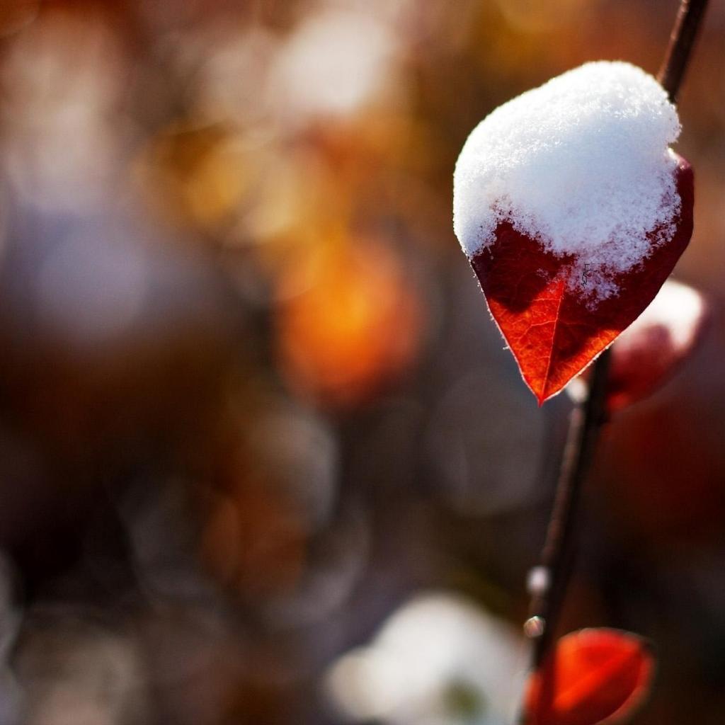 Wallpaper Snow on red leaf