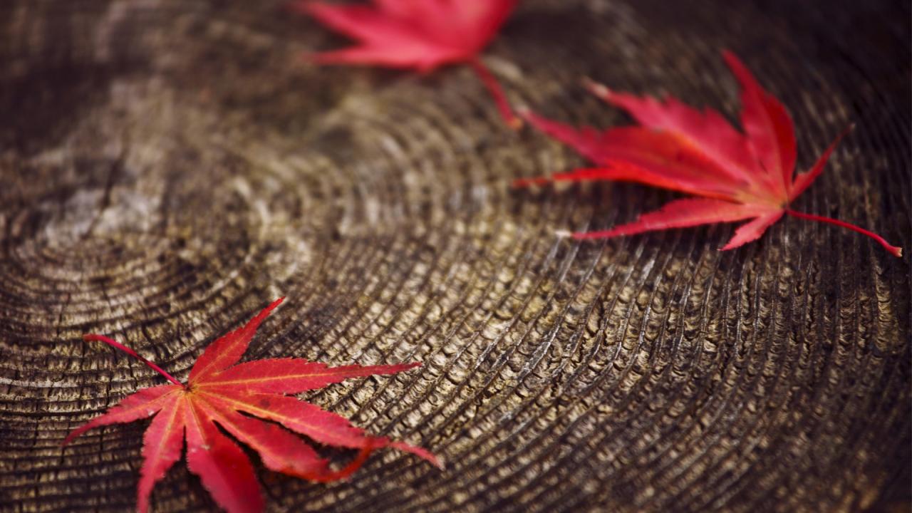 Wallpaper Red leaves on a stump