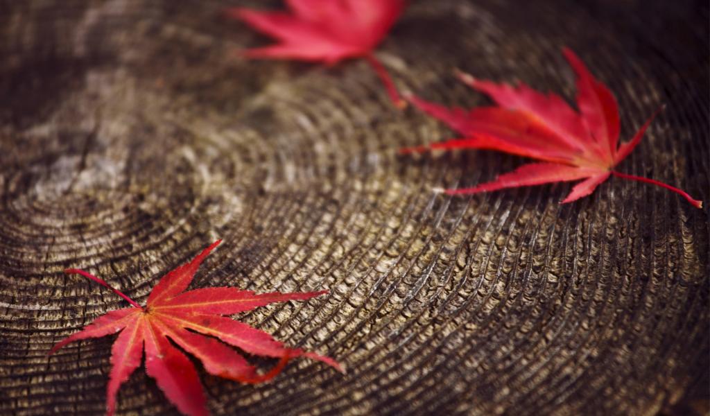 Wallpaper Red leaves on a stump
