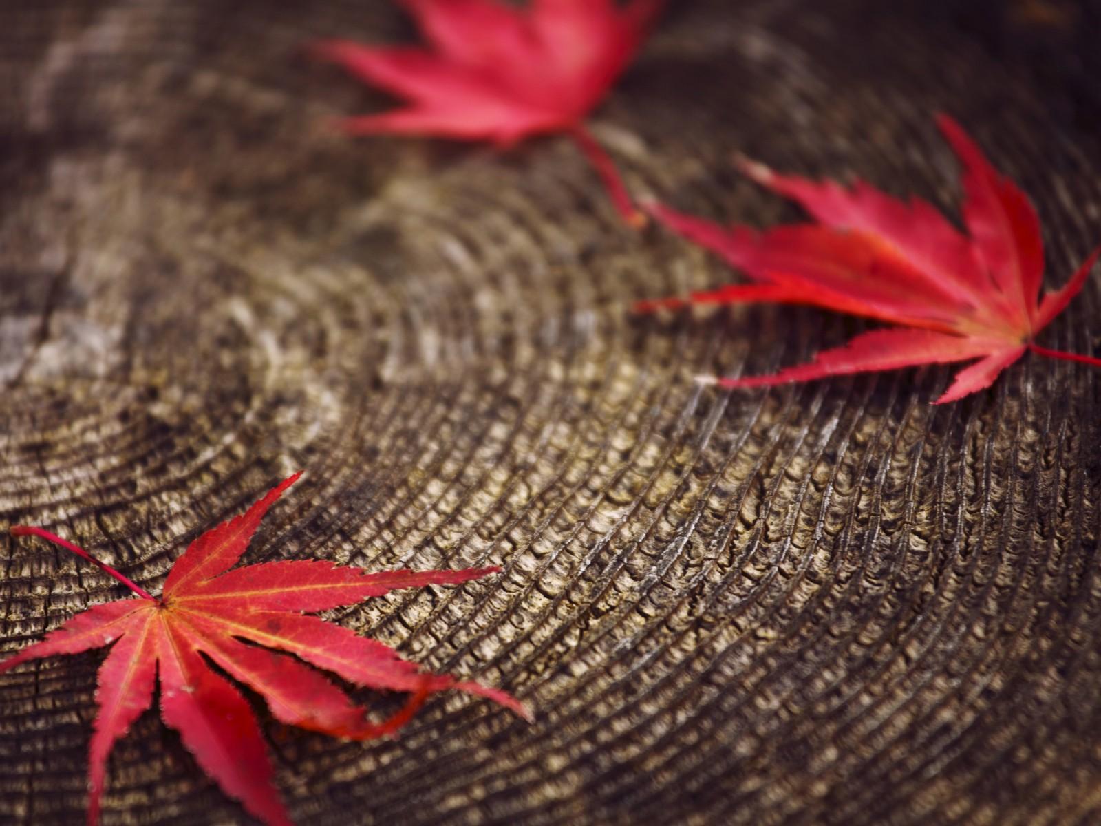 Wallpaper Red leaves on a stump
