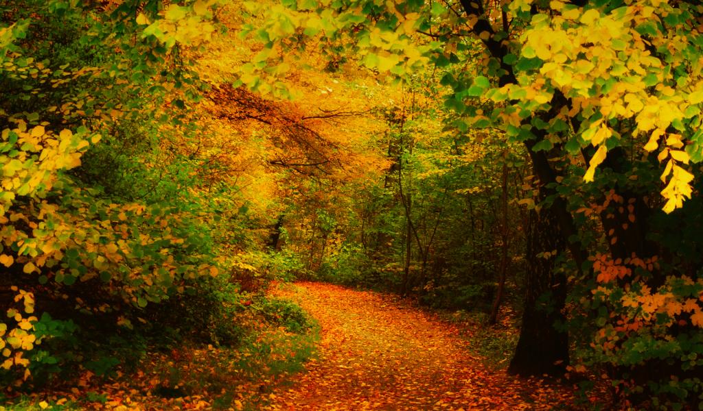 Wallpaper The road covered with yellow leaves