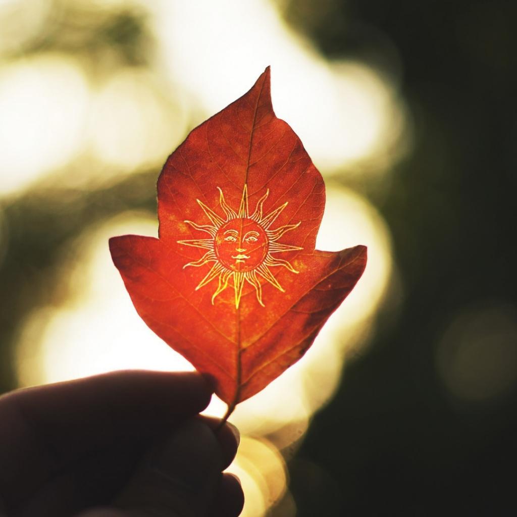 Wallpaper Drawing on the autumn leaf