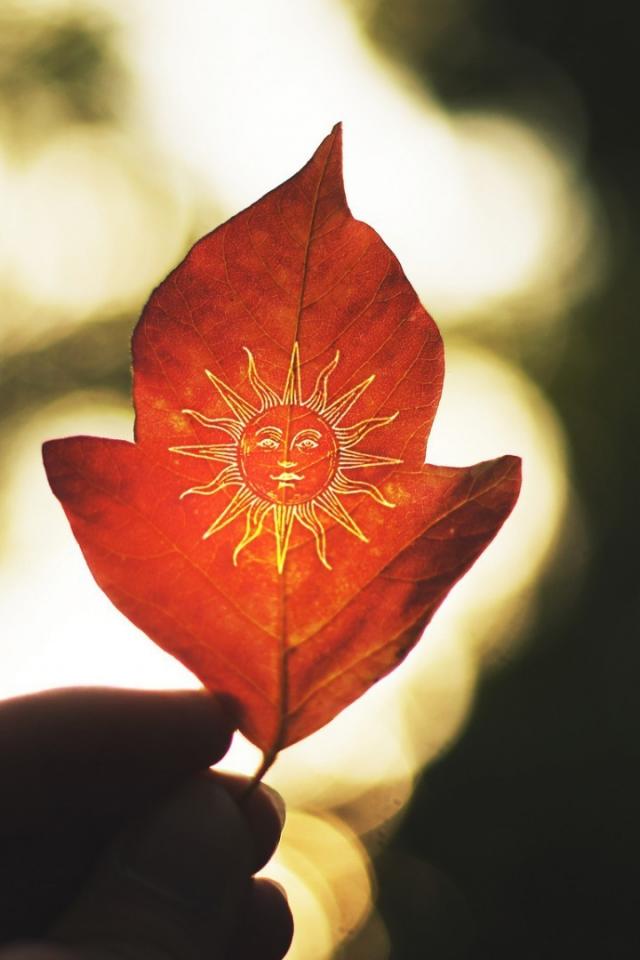 Wallpaper Drawing on the autumn leaf