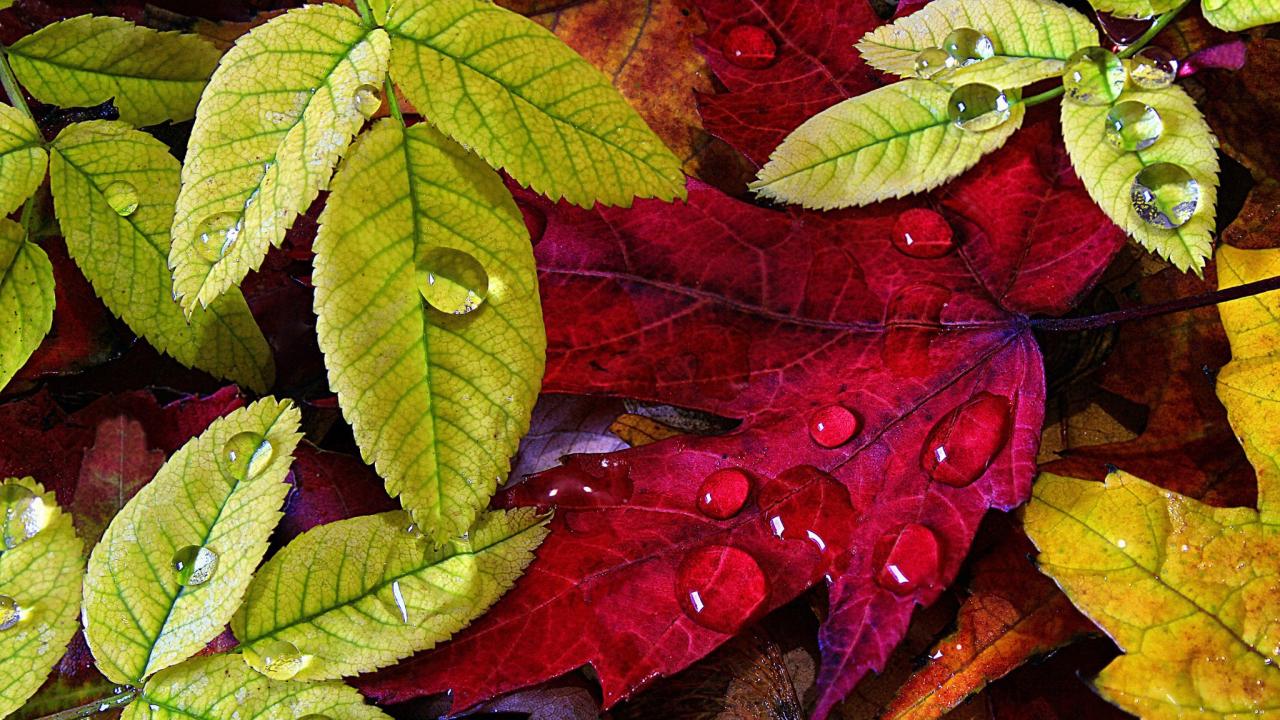 Wallpaper Red and green autumn leaves
