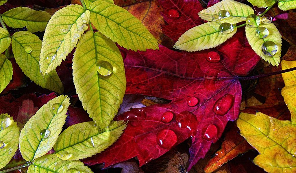 Wallpaper Red and green autumn leaves