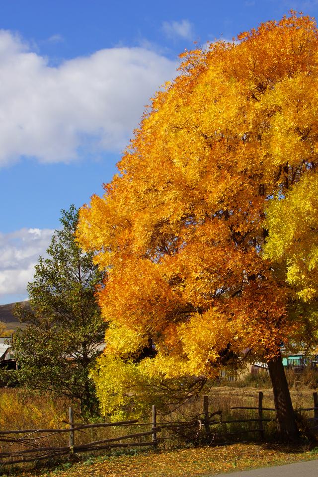 Wallpaper Yellow tree near the road