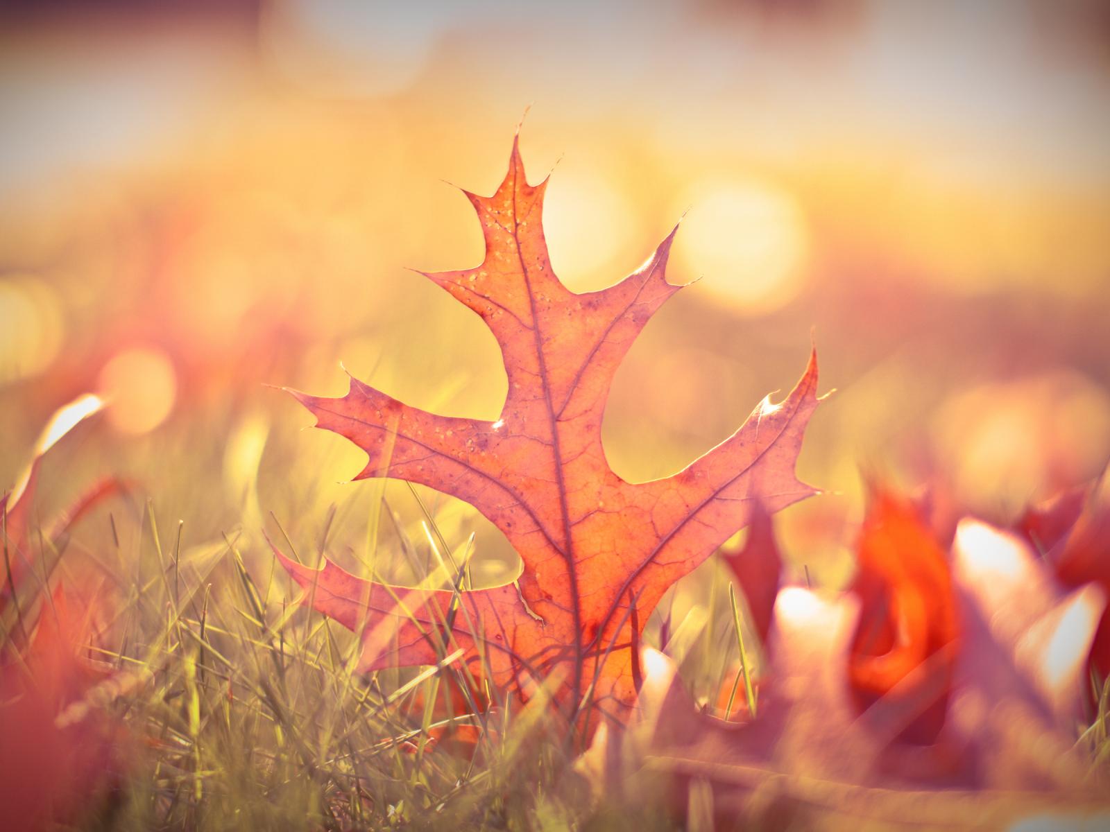 Wallpaper An autumn leaf in the grass