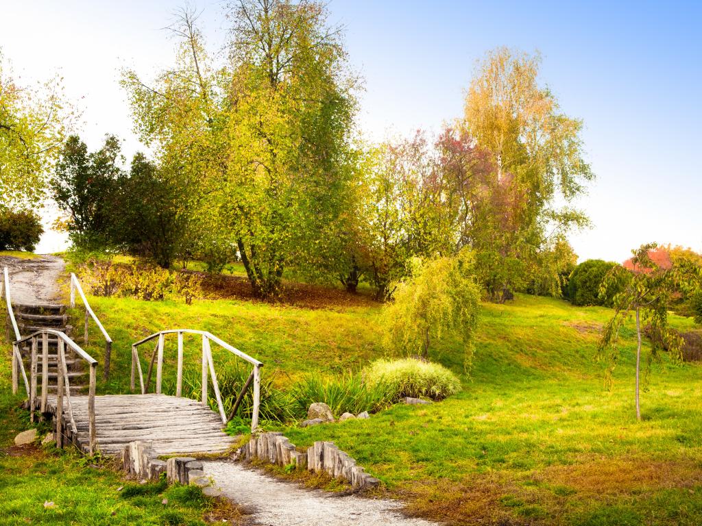 Wallpaper Wooden bridge over the river