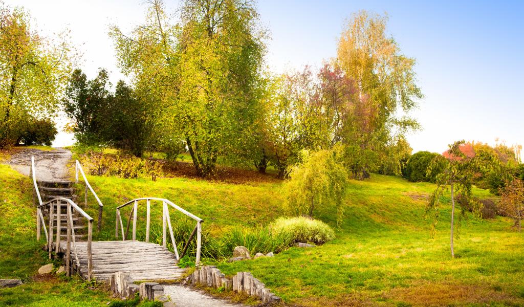 Wallpaper Wooden bridge over the river