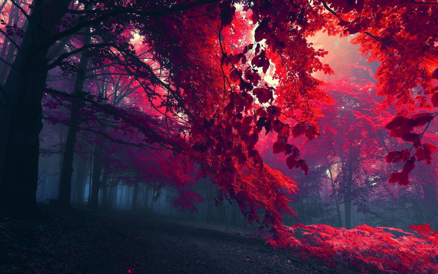 Wallpaper Red leaves and the fog