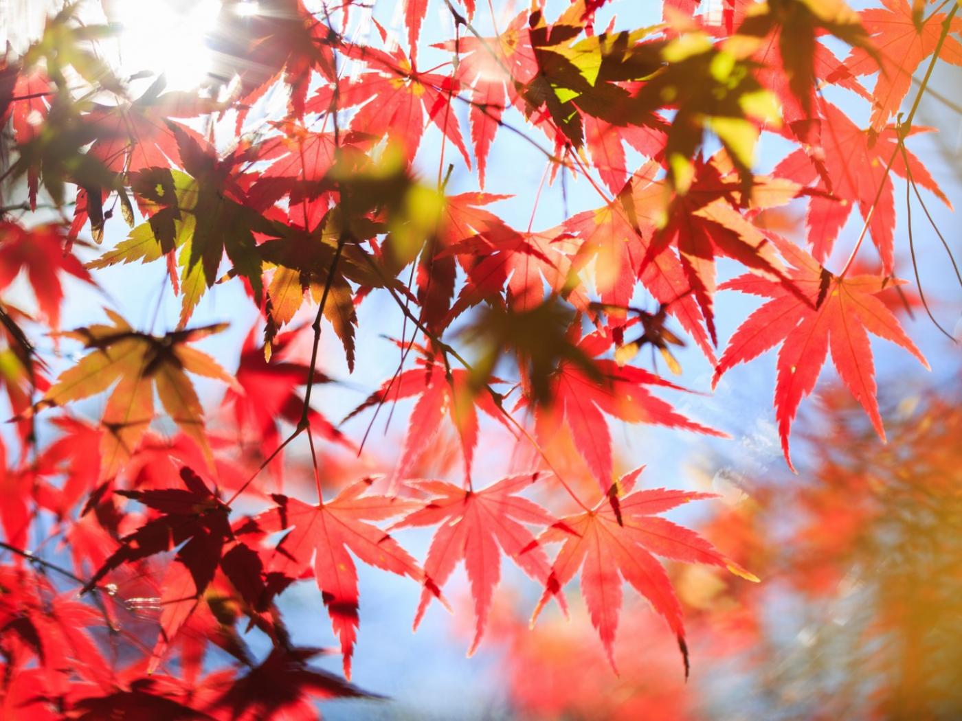 Wallpaper Red leaves in the sun