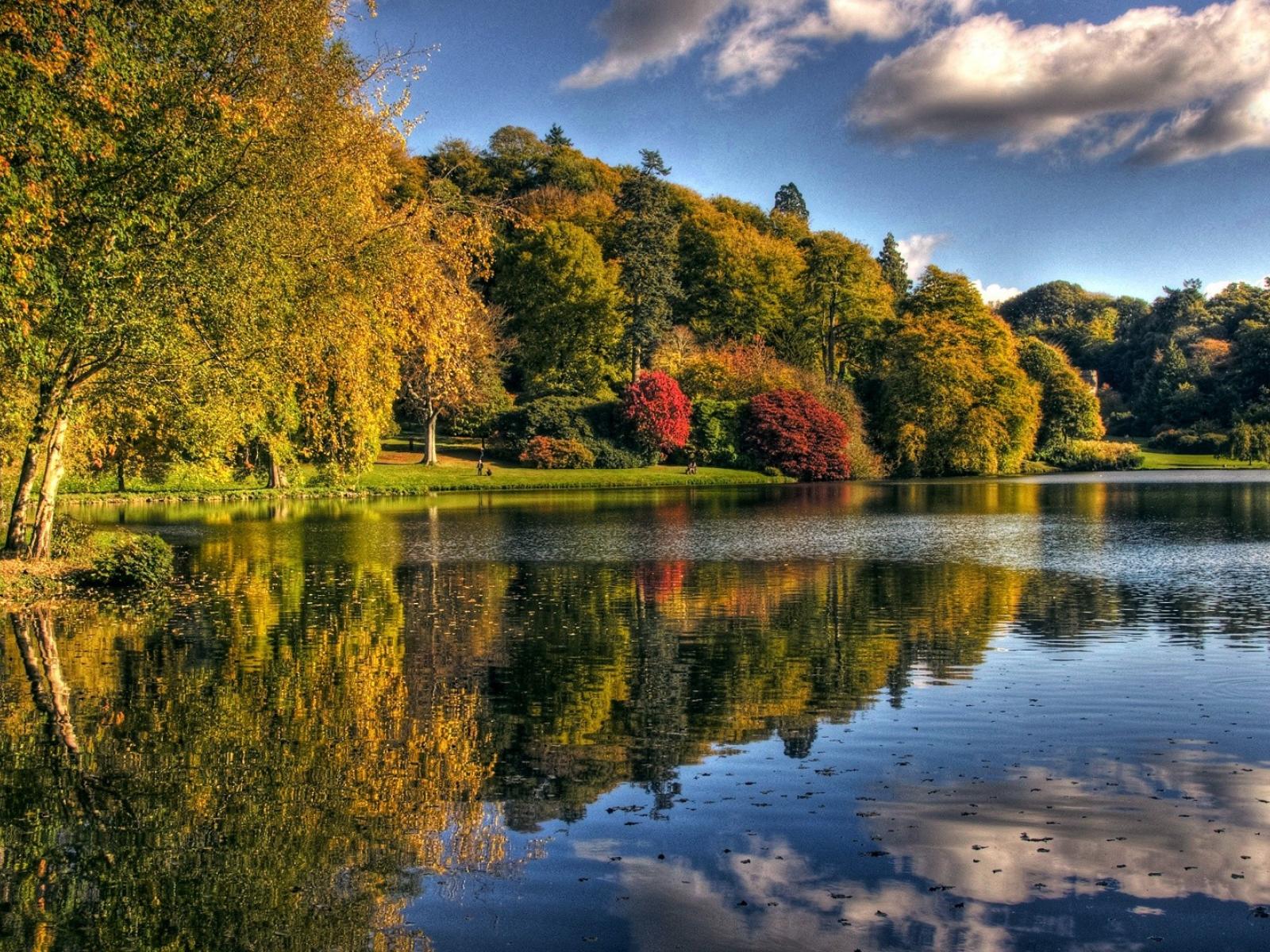 Wallpaper The lake with the fallen leaves
