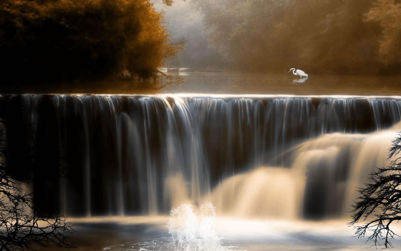 Wallpaper Bird waterfall