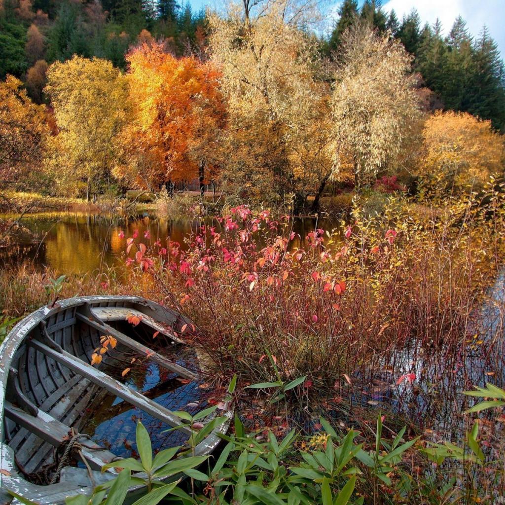 Wallpaper Abandoned boat on the shore of the lake flooded