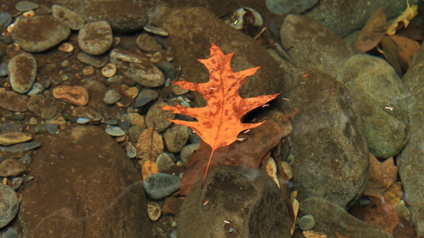 Wallpaper Oak leaf on water