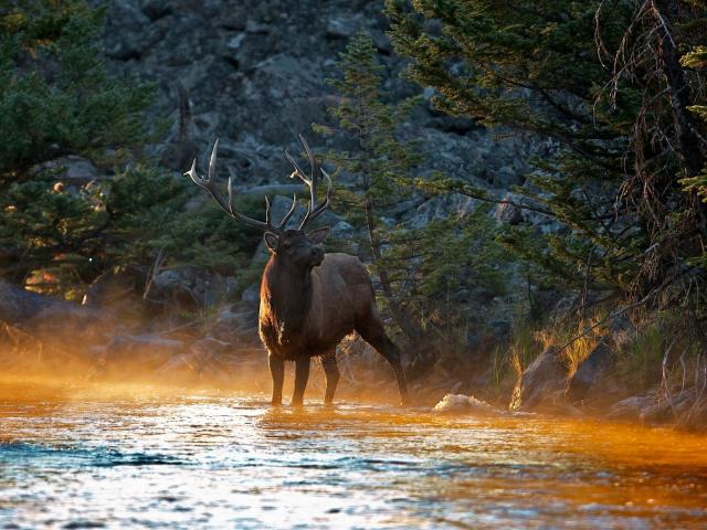 Wallpaper The elk in the river autumn