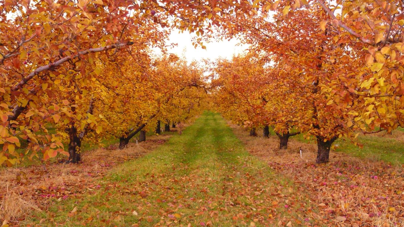 Wallpaper the autumn garden in orange
