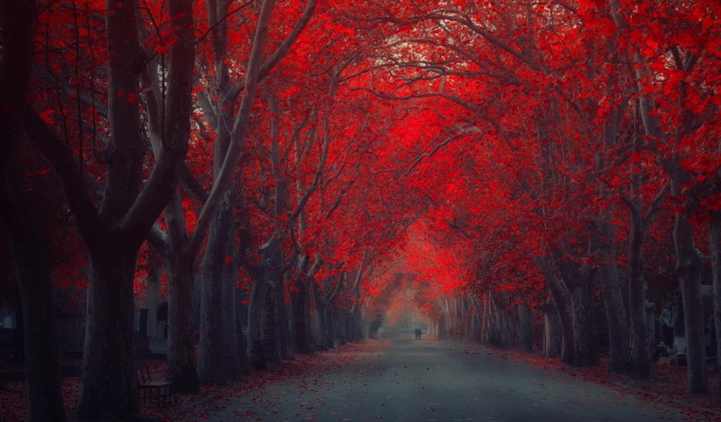 Wallpaper Red autumn street