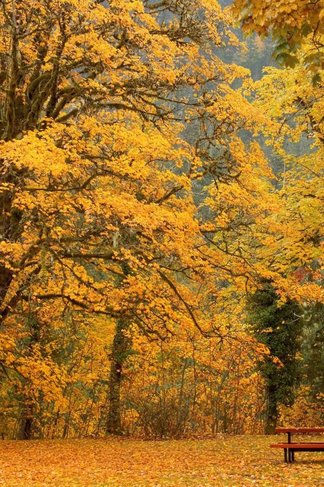 Wallpaper Bench under a yellow trees