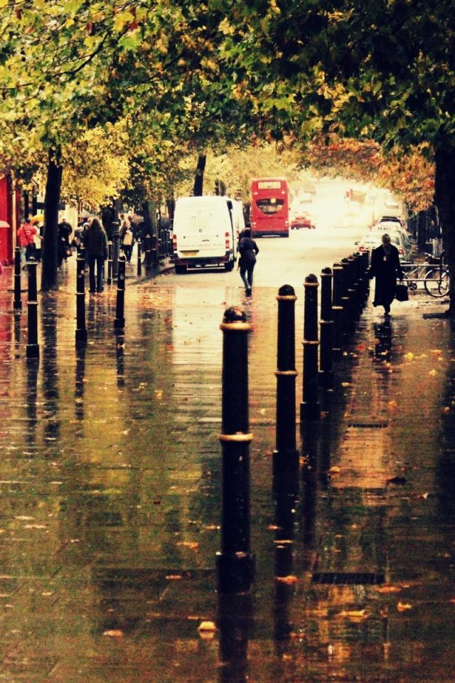 Wallpaper Wet city street