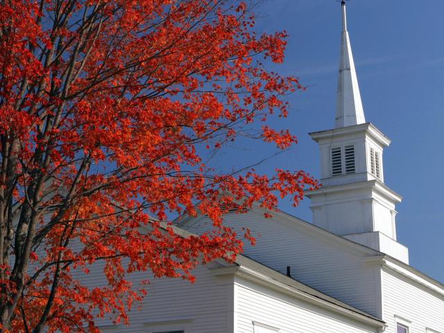 Wallpaper White temple in autumn