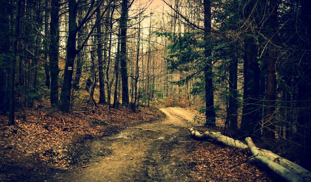 Wallpaper The road in the woods in autumn