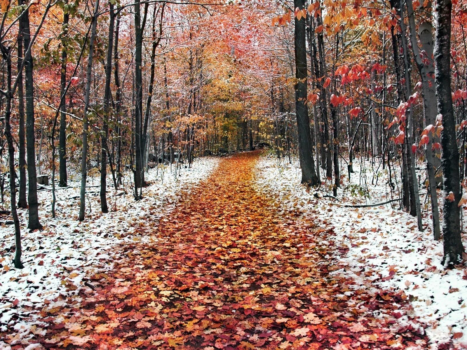 Wallpaper Late autumn the first snow fell