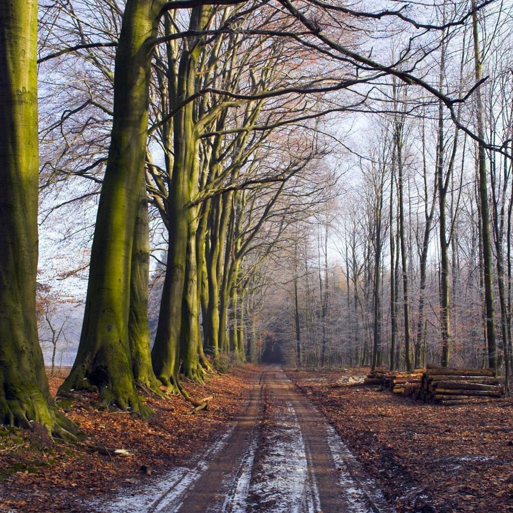Wallpaper Autumn trees on the background of the first snow reflected in the water