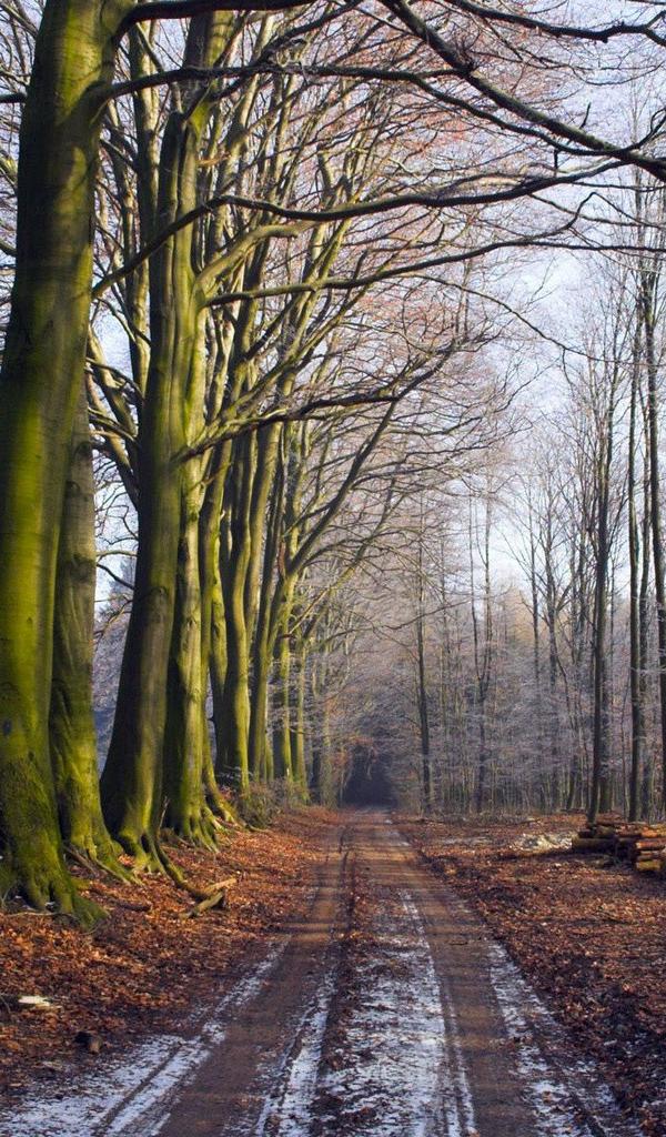 Wallpaper Autumn trees on the background of the first snow reflected in the water