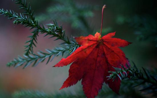 Wallpaper Red leaf on a fir-tree