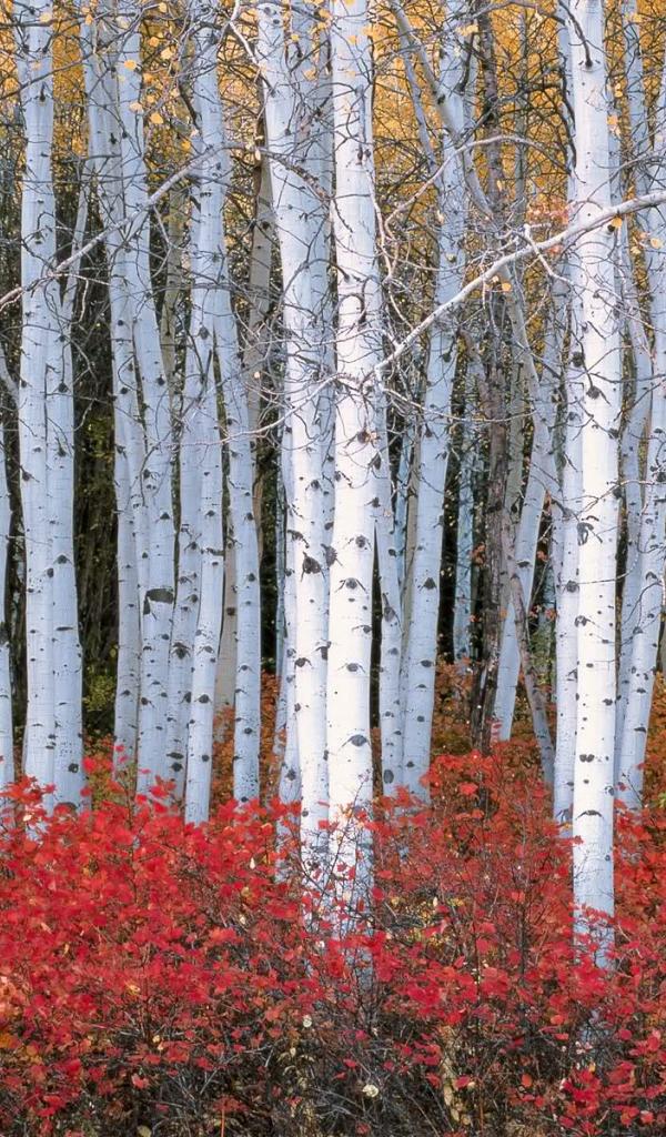 Wallpaper Red bushes among birches