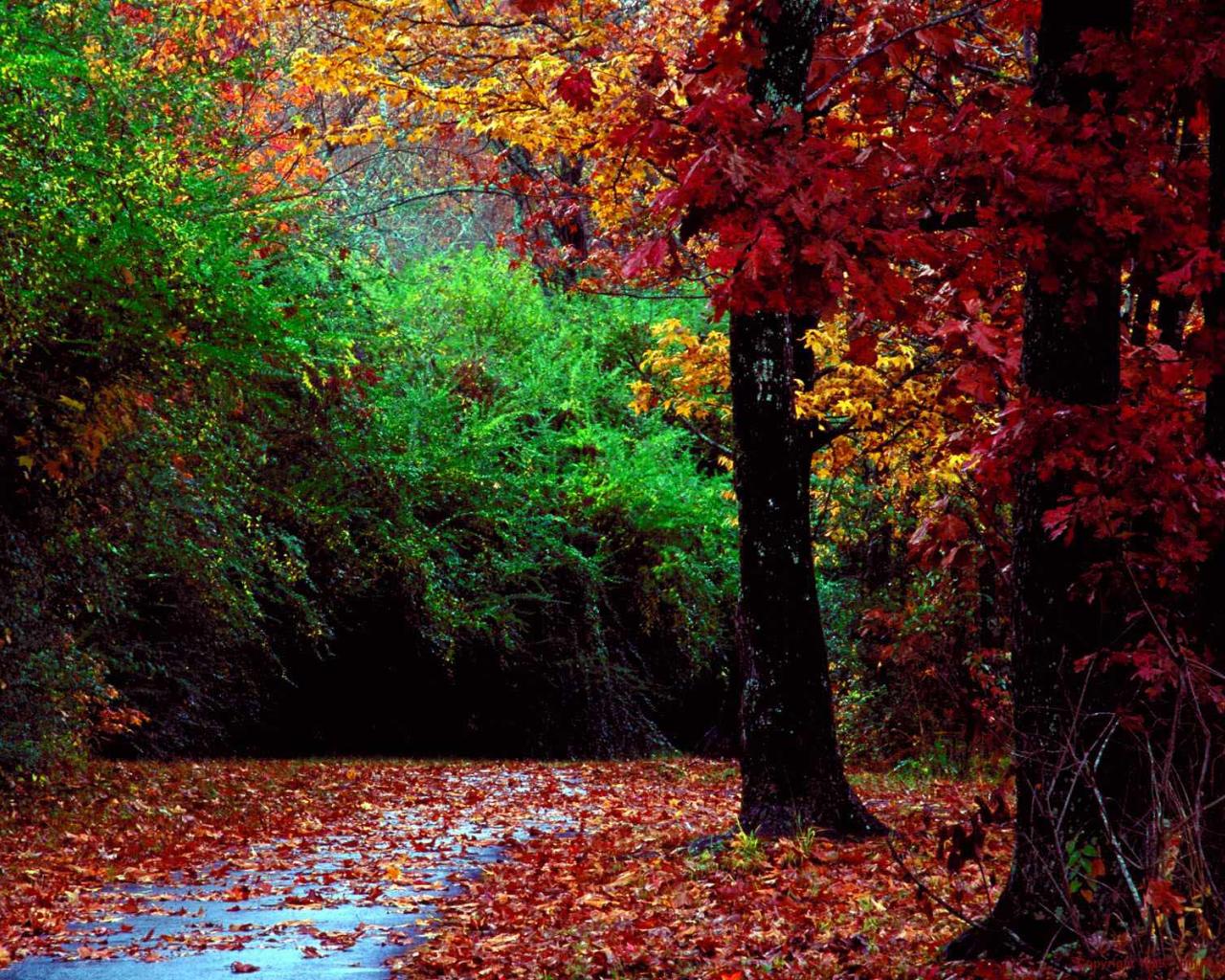 » Wallpaper Red leaves in autumn forest
