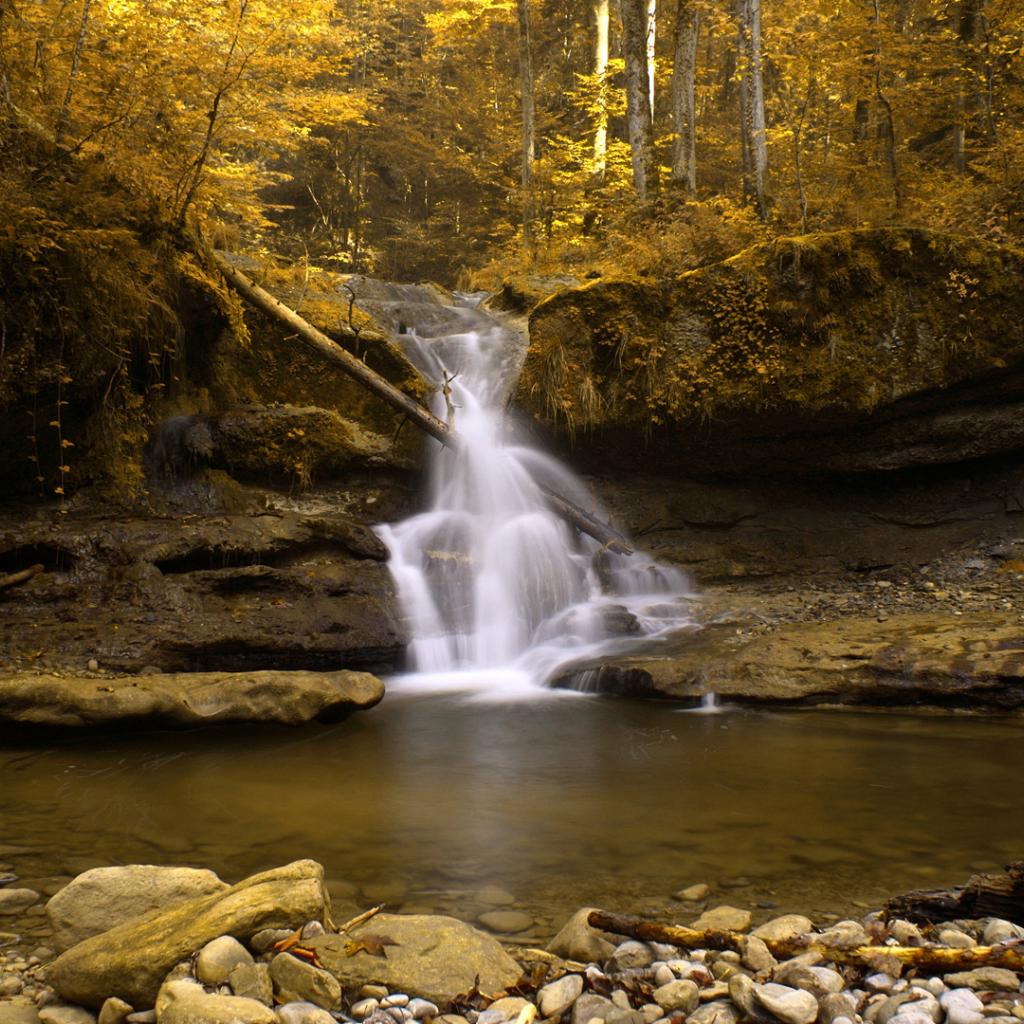 Wallpaper Waterfall in autumn forest